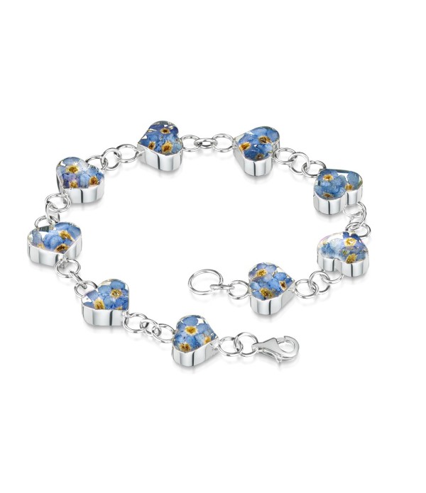 Embrace the timeless beauty and sentimental charm of the forget-me-not flower with our exquisite heart bracelet. Symbolizing true love and cherished memories, each piece is meticulously handcrafted to capture the delicate essence of this beloved bloom. Crafted with real flowers encased in sterling silver or gold-plated settings, this bracelet is a beautiful testament to both nature's artistry and skilled craftsmanship.