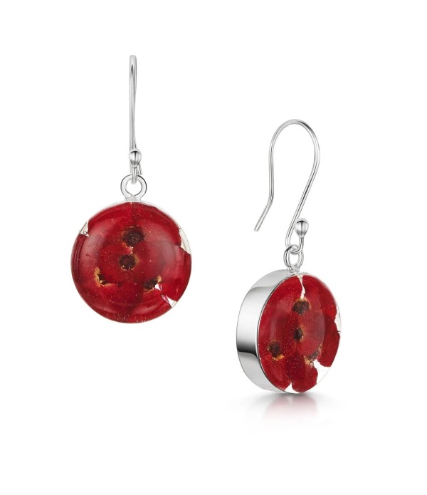 Brighten up your look with these vibrant sterling silver earrings featuring real red Euphorbia Milii flowers. These tiny blooms, which resemble delicate poppies, are preserved in clear resin, creating a stunning display of natural beauty. The bold red color symbolizes passion and strength, making these earrings perfect for adding a pop of color to any outfit. Handmade with real flowers by Shrieking Violet®, these earrings are a beautiful blend of nature and craftsmanship, ideal for those who love unique, nature-inspired jewelry.