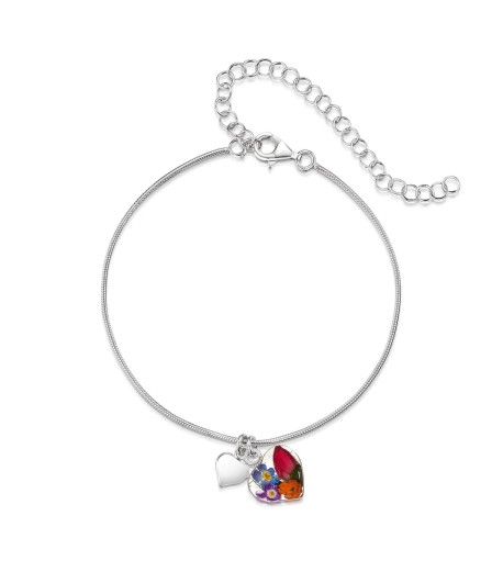 Sterling Silver Snake Anklet/Bracelet - Heart - Mixed Flowers