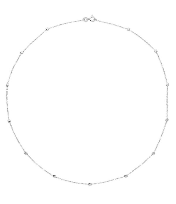 A fine sterling silver chain is accented with evenly spaced polished bead details, creating a light-catching design with subtle movement. Refined and understated, the delicate spacing adds interest while keeping the look effortlessly wearable, perfect worn alone or layered.