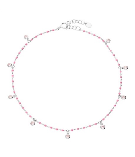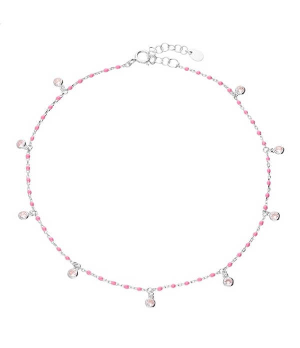 925 Sterling Silver Anklet With Pink Enamel Beads