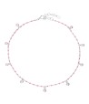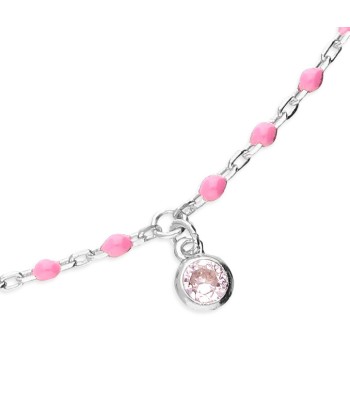 23-25cm Pink enamel bead chain cubic zirconia rub-over charms