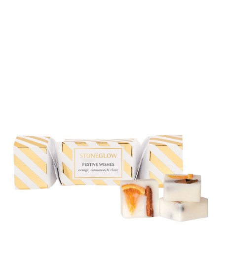 Seasonal - Festive Wishes - Orange, Cinnamon & Clove Scented Botanical Soy Wax Melts offer an enchanting aroma that captures the essence of cozy gatherings and holiday cheer. Each box contains three exquisite wax melts crafted to infuse your space with a delightful blend of zesty orange, warming cinnamon, and aromatic clove.